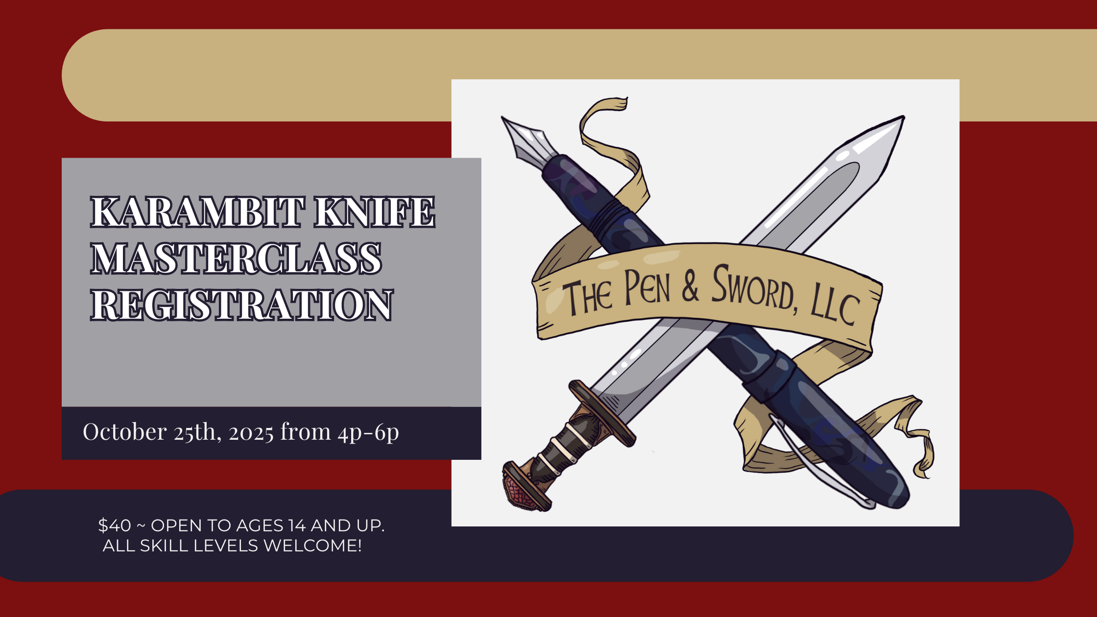 This class is a perfect opportunity to dive into a specialized form of Stage Combat Knife fighting with the Pen & Sword! This stage combat masterclass will be taught by our very own Pierce Williams from 4:00pm to 6:00pm on October 25th, 2025, at 6503 W Okanogan Ave, Kennewick, WA 99336 (Yes& Company Space). It is open to anyone 14+ whether you are in it for the theatrical training, for fun, or for martial exploration! Come join us!